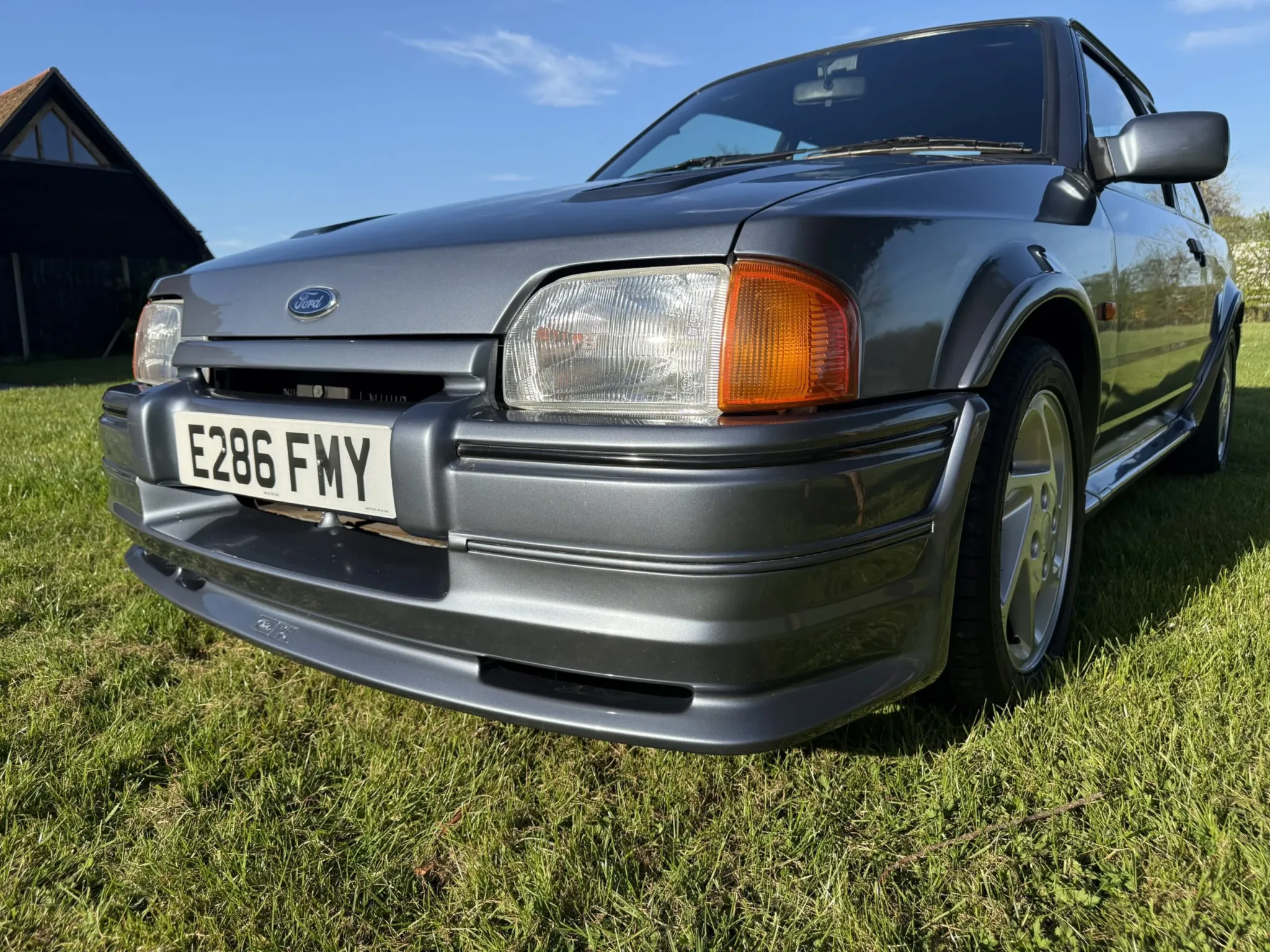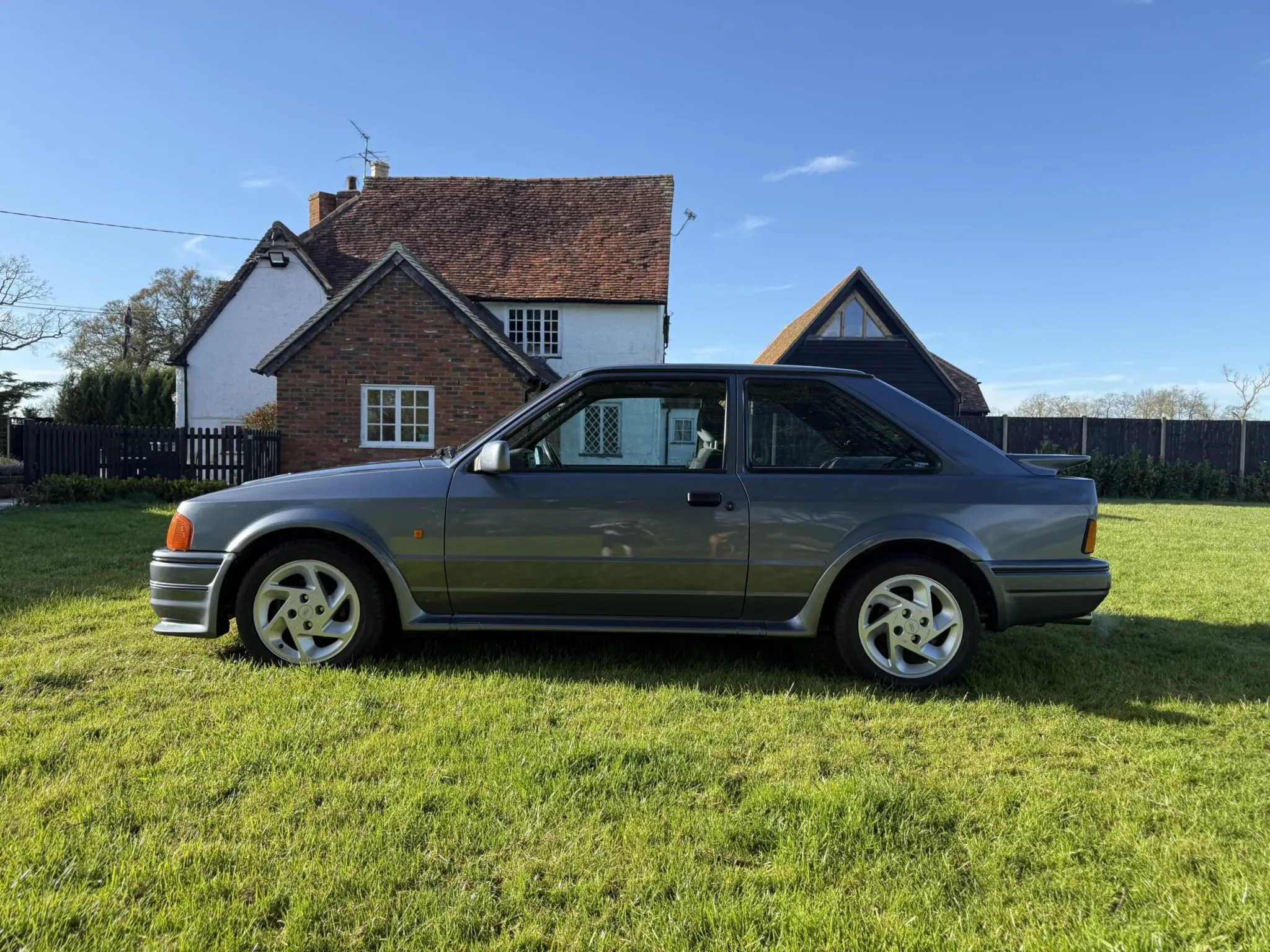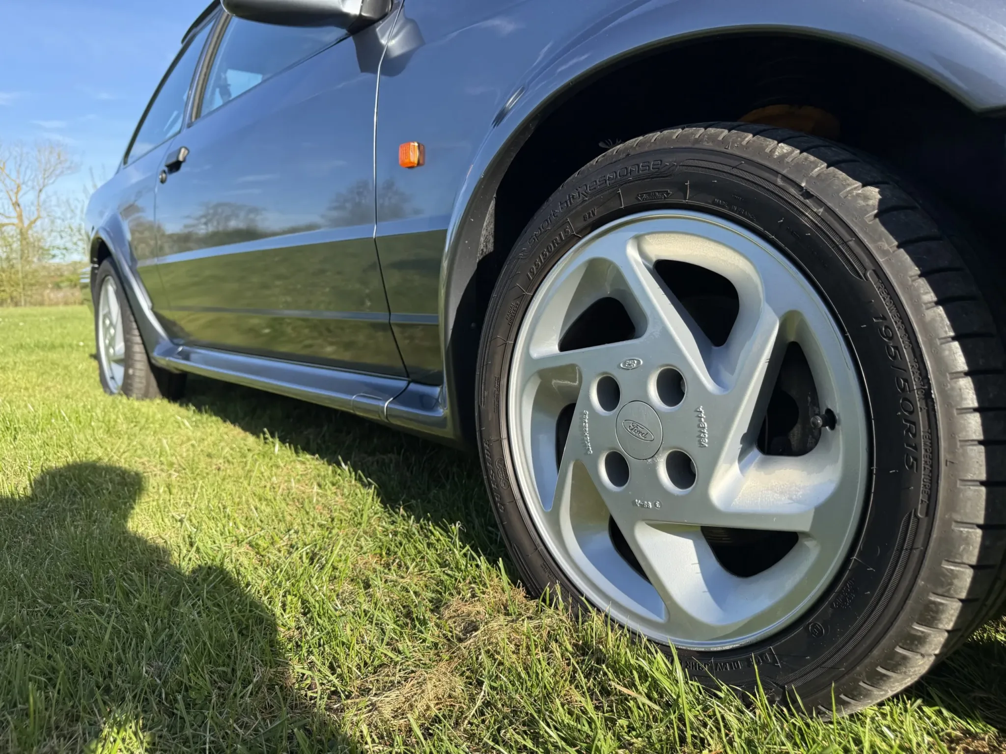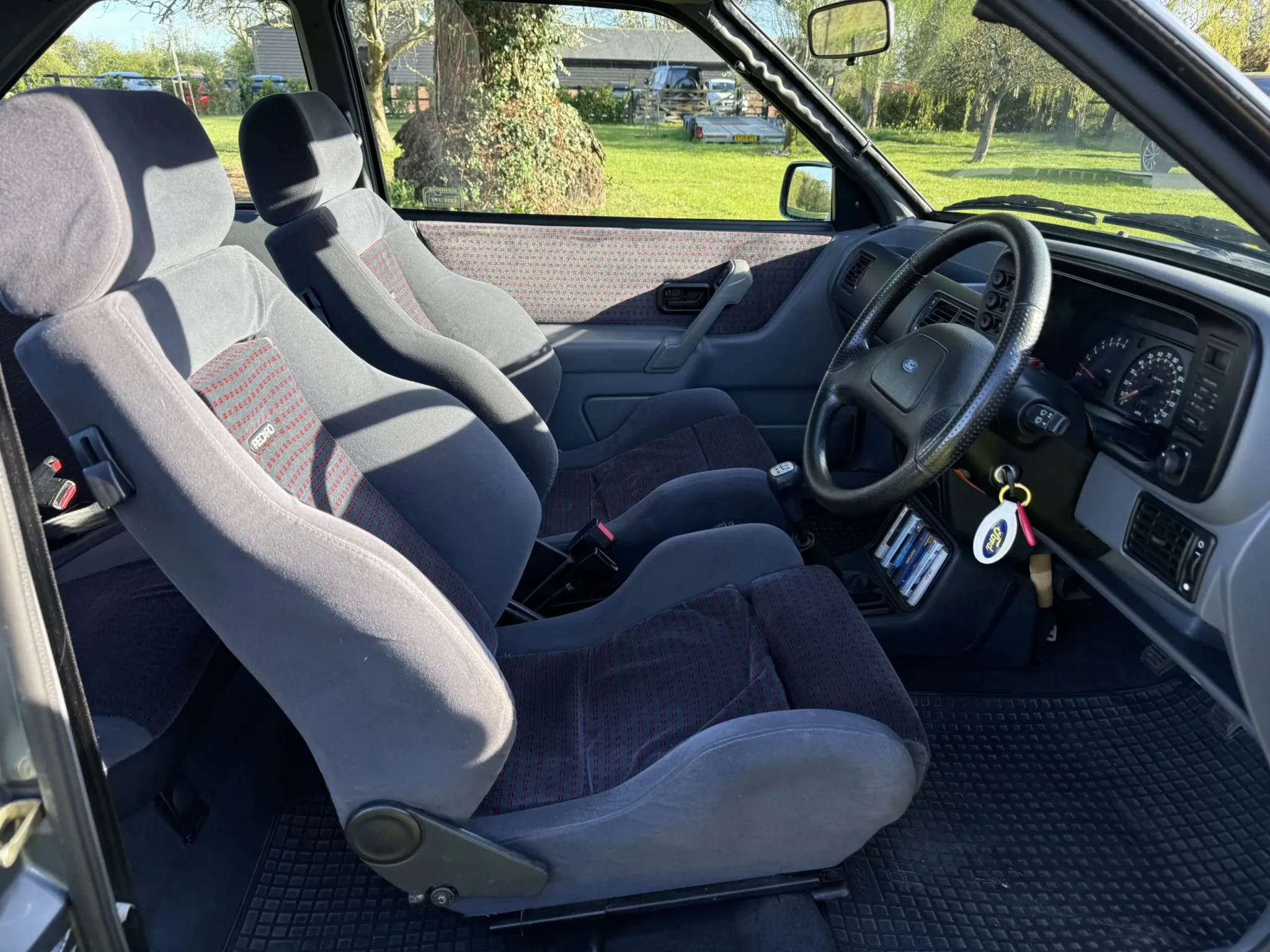 Fabulous Mercury Grey bodywork with no rust and very minimal marks. Unmarked, original alloy wheels. Totally original and unmodified. Genuine Ford RS optional front bumper lower splitter. Original Recaro interior in great condition, other than the driver’s seat material becoming a little saggy.