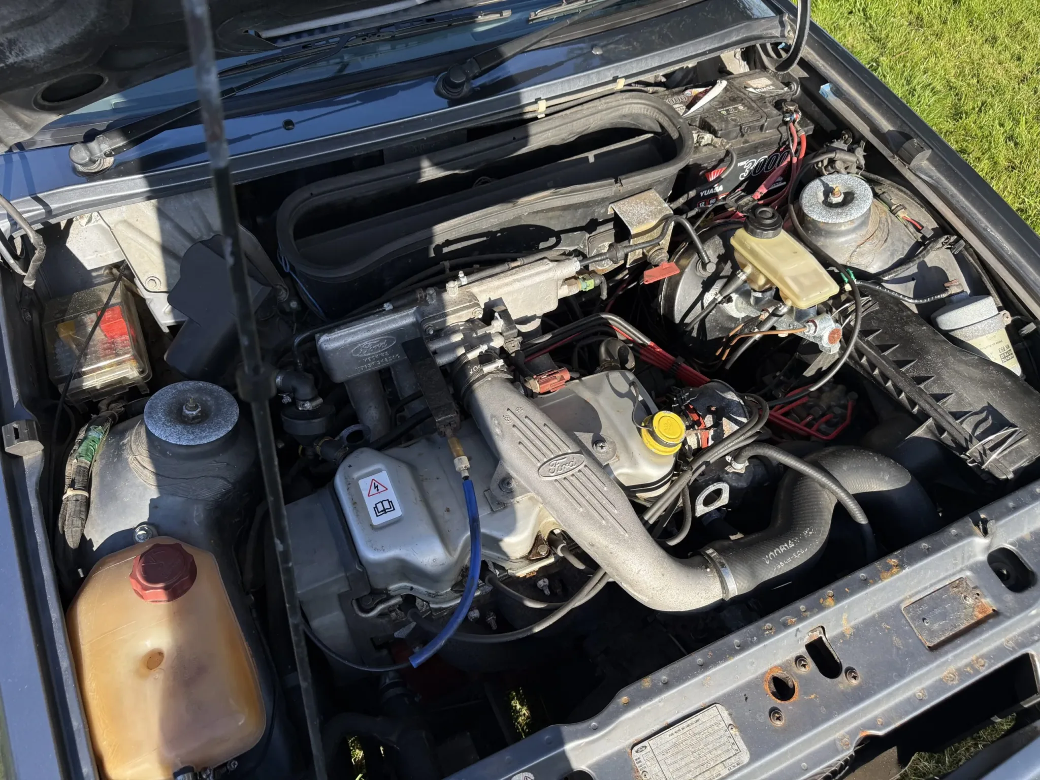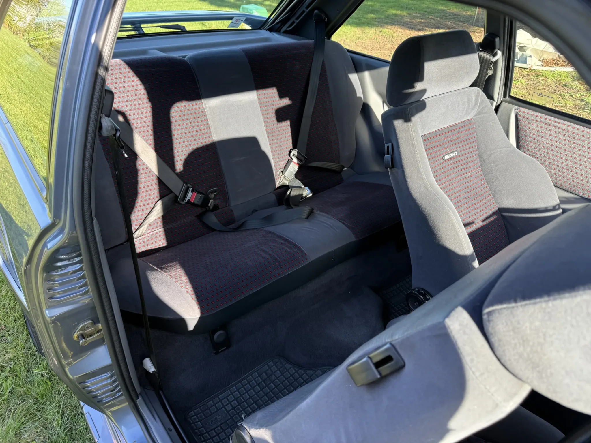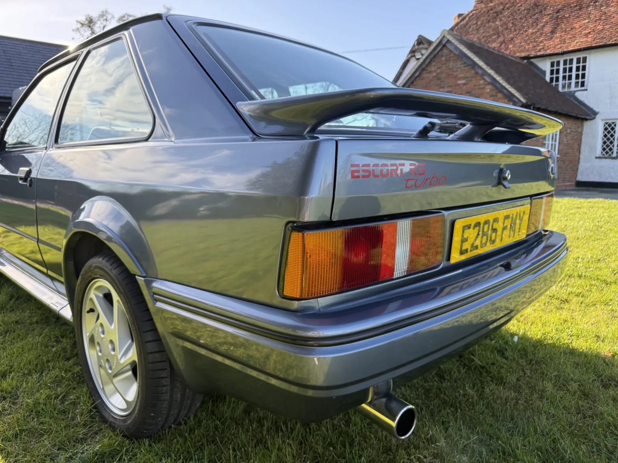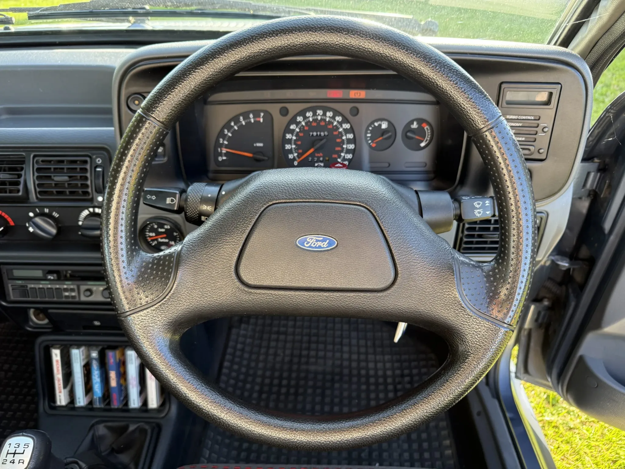 Fabulous Mercury Grey bodywork with no rust and very minimal marks. Unmarked, original alloy wheels. Totally original and unmodified. Genuine Ford RS optional front bumper lower splitter. Original Recaro interior in great condition, other than the driver’s seat material becoming a little saggy.