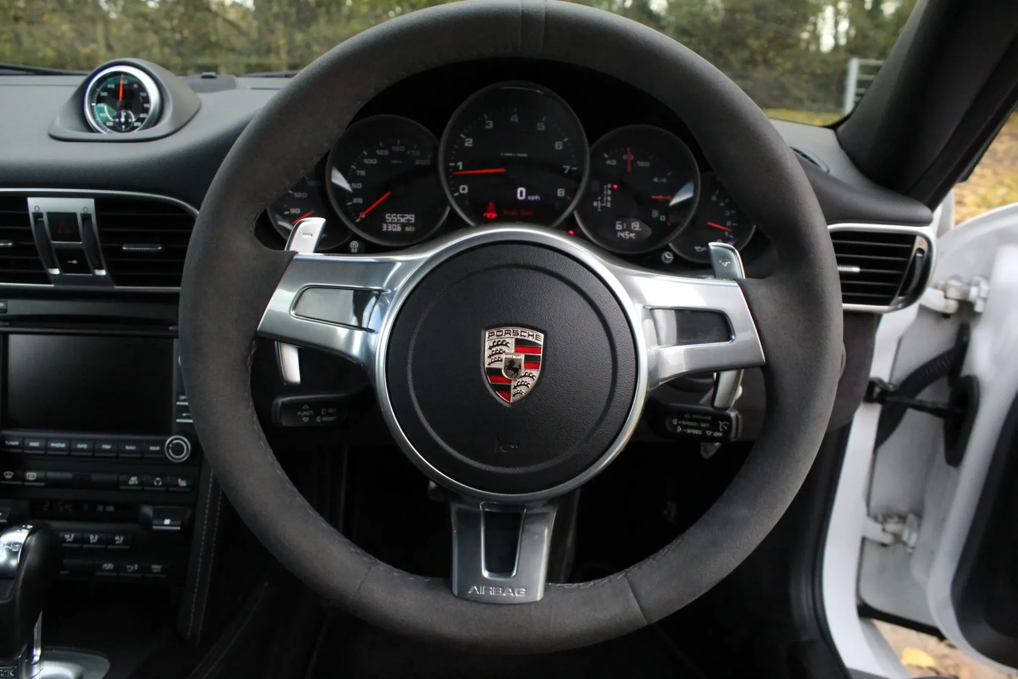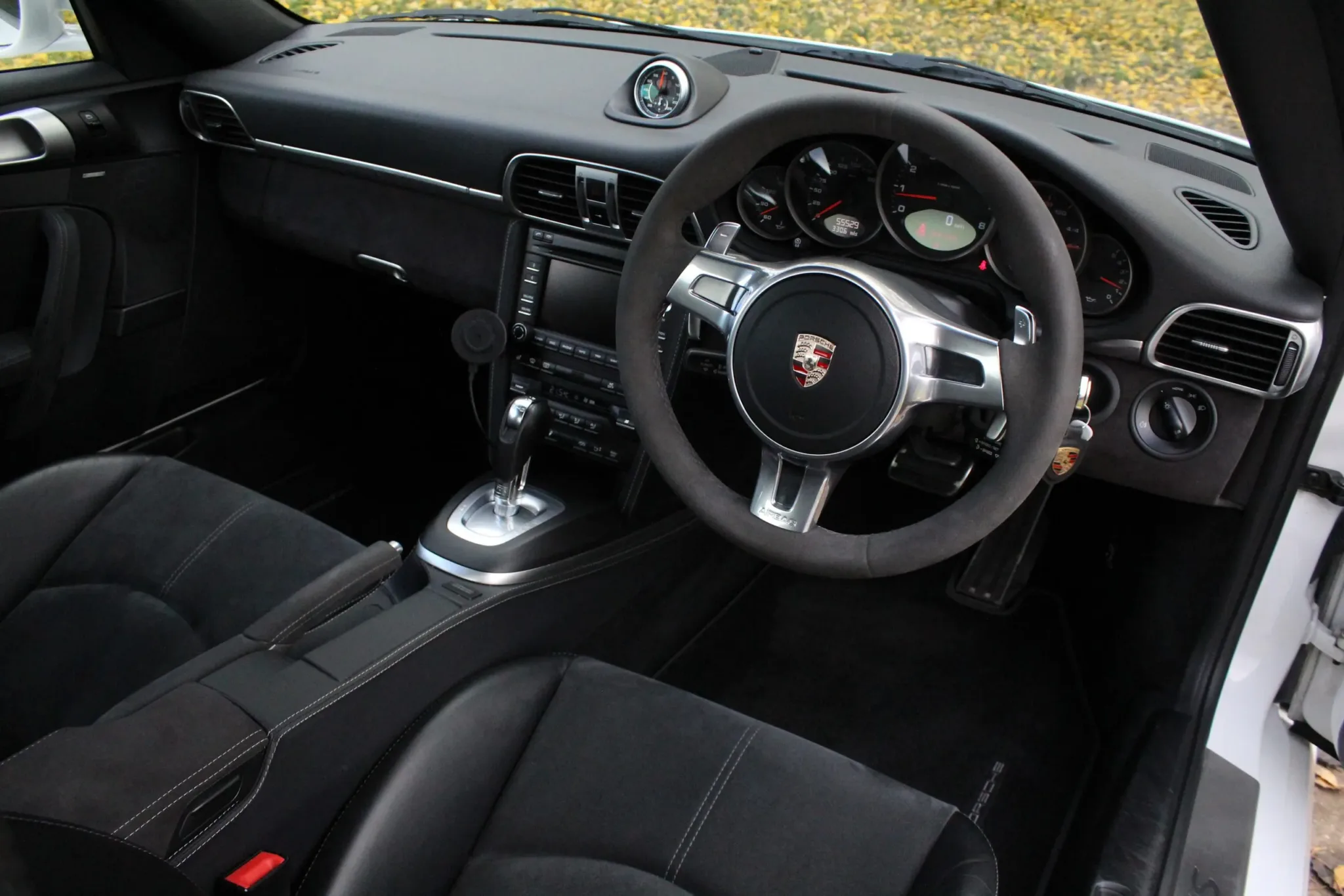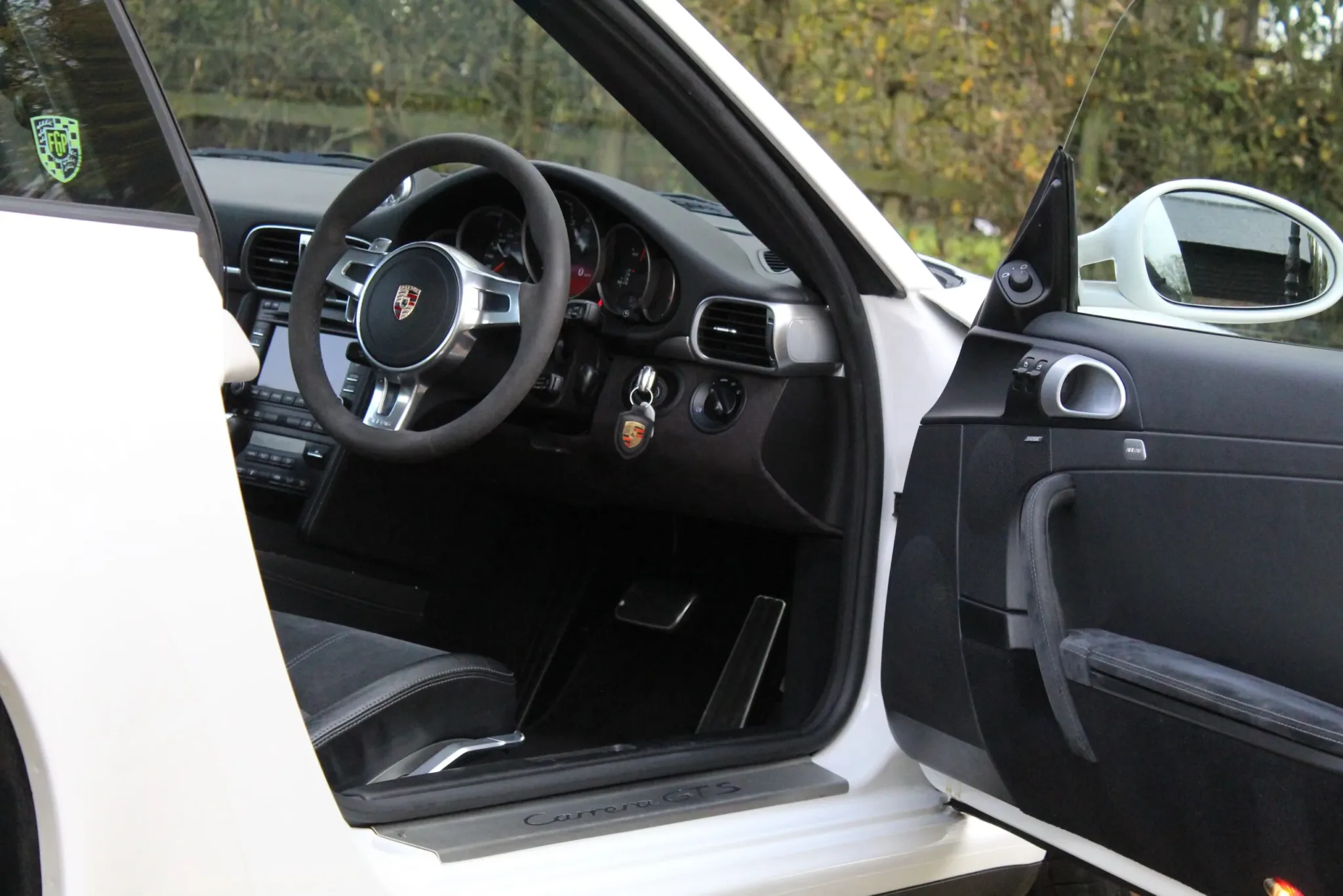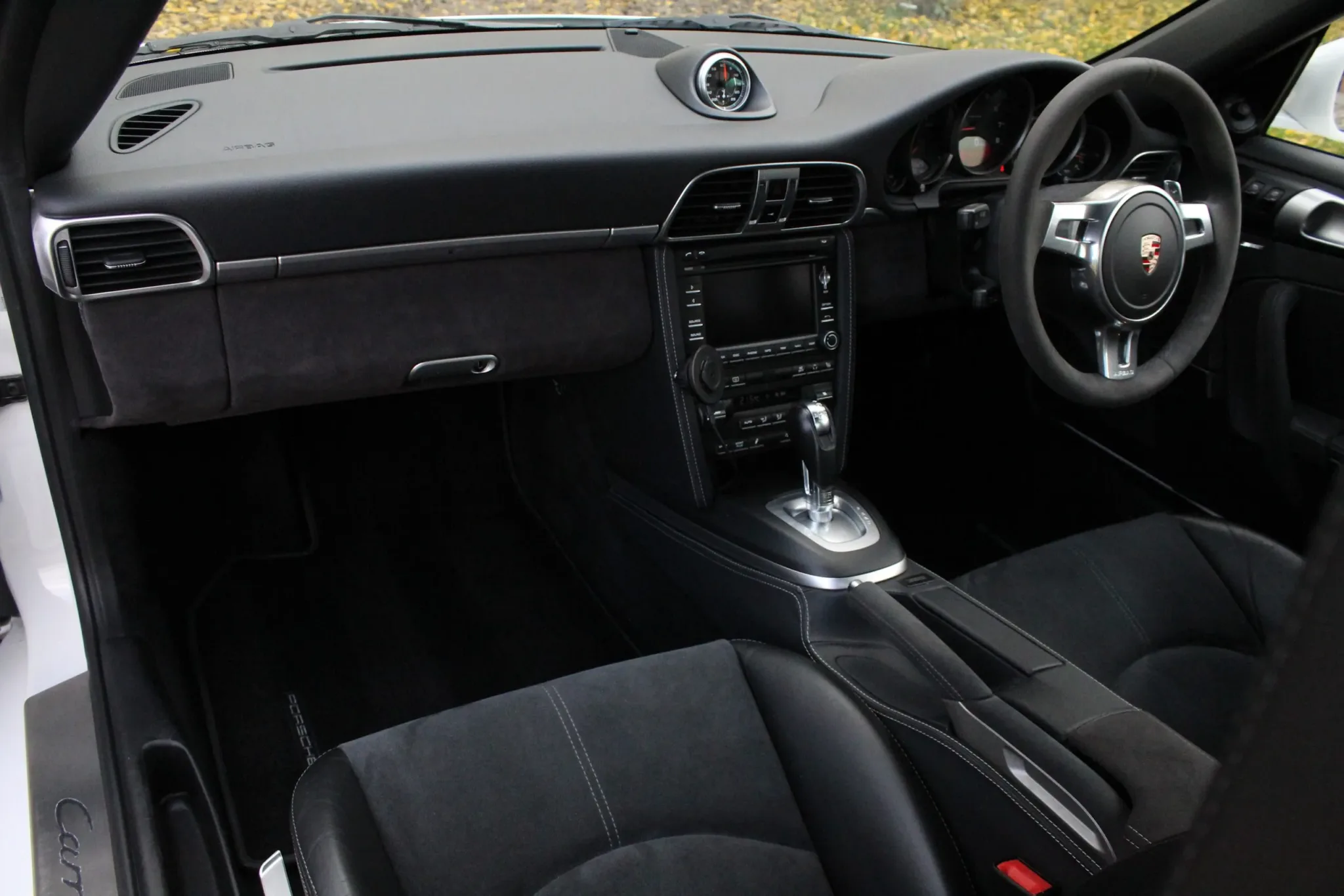 Stunning 997 Carrera GTS, in exceptional condition throughout, with pristine bodywork. Original centre lock wheels, recently refurbished in bronze/gold, contrasting beautifully against the Carrara White paintwork. The large GTS brake calipers are unmarked, the headlight faces are clear and the sports exhaust tail pipe tips are clean. Our customary FGP Comprehensive Detailing package has been completed, exhibiting the 911’s beautiful condition in its best light.