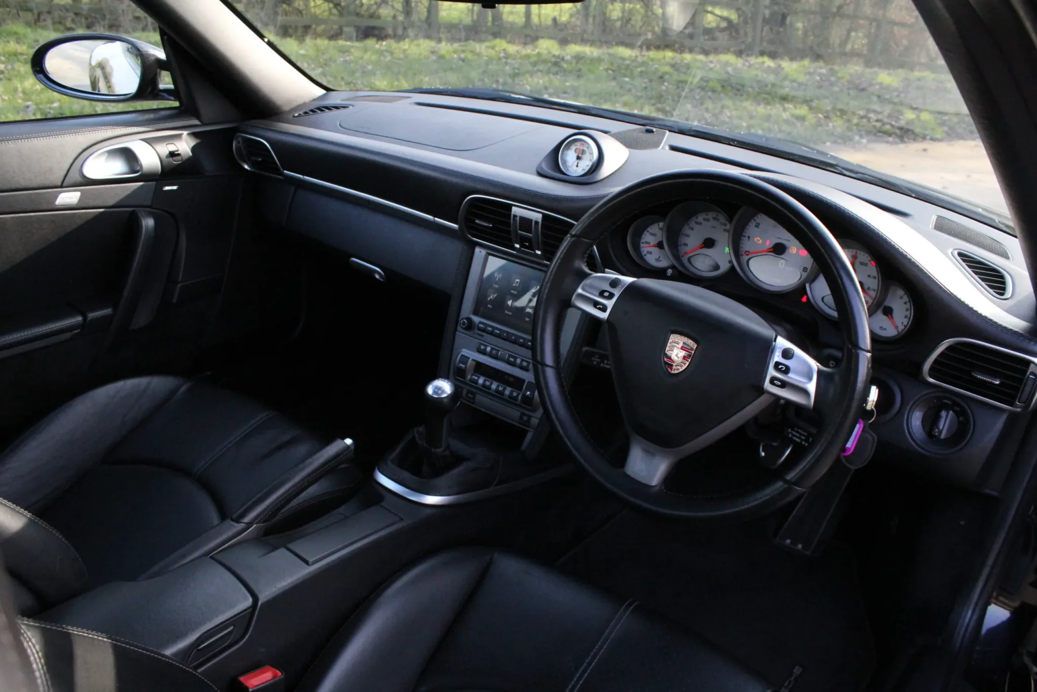This 997.1 Carrera S underwent £19,500-worth of works with “Hartech” on 02/07/2024 at 78,956 miles, including a comprehensive engine rebuild, as well as extensive other works (listed below). Finished in Basalt Black Metallic, the bodywork is in wonderful order throughout, with equally fine paintwork. The headlights are clear and free from oxidisation, the brushed stainless finish to the tail pipe tips is clean, the 19″ Sport Design multi-spoke alloy wheels are without a mark and the large “S” Guards Red brake calipers are in good condition. This particular example is specified with factory fitted “M030” sports suspension, which sits the car 10mm lower than cars with “PASM”, offering a slightly more sporty stance. The 911 is also without sun-roof, presenting a clean and uncluttered roof line. As part of our preparation process, our customary FGP Comprehensive Detailing Package will be completed.
