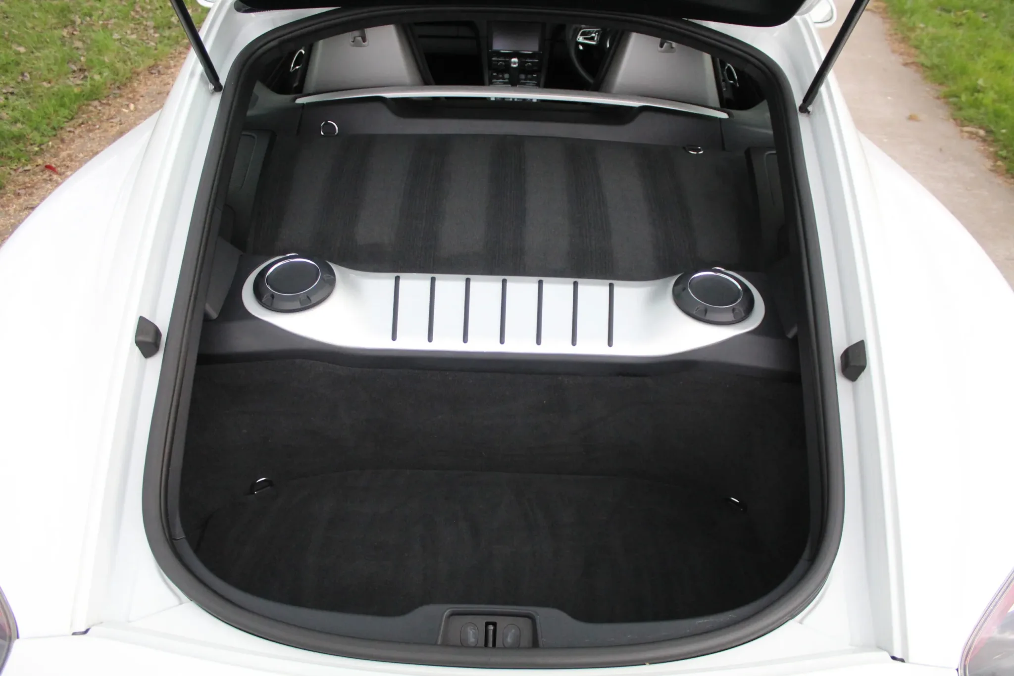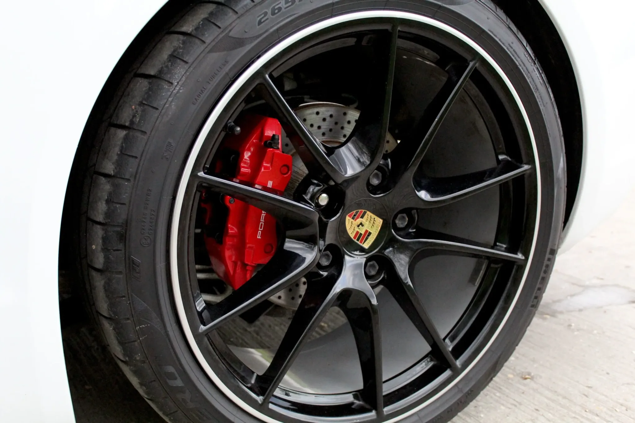 Carrara White 981 GTS, with a mere 20,016 miles, in nigh on as-new condition throughout. Immaculate Guards Red brake calipers, seen through unmarked, original 20″ “Carrera S 3” alloy wheels, in their original black with silver lip finish.