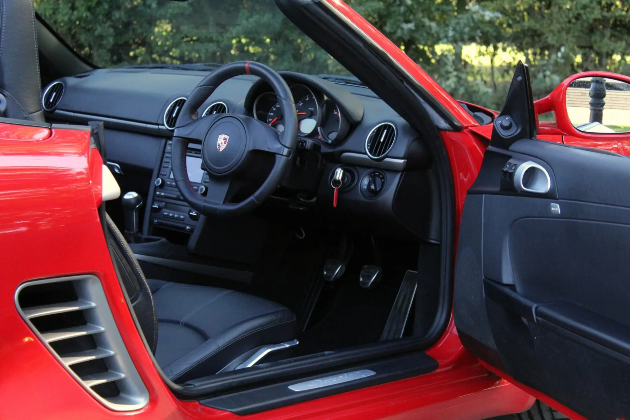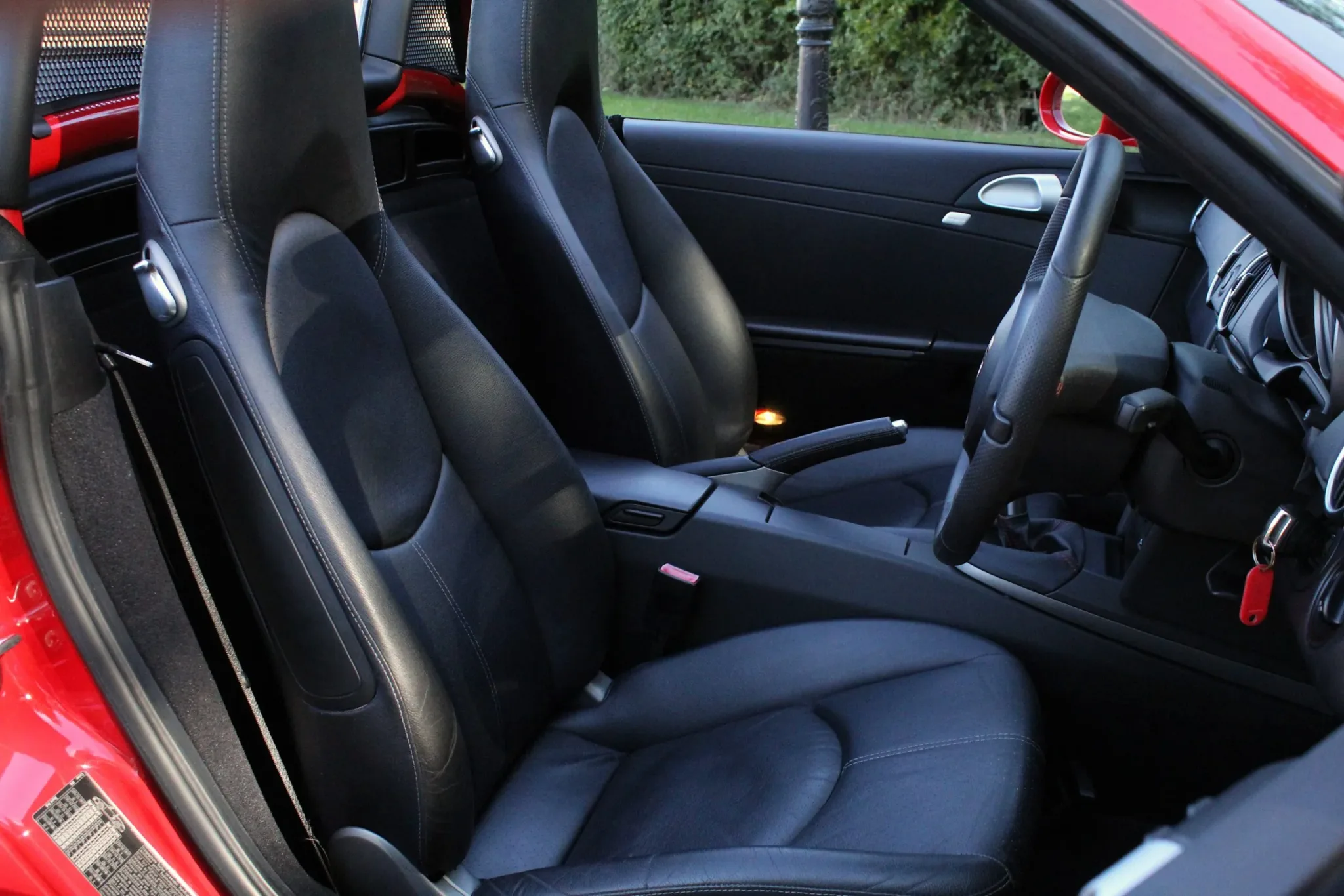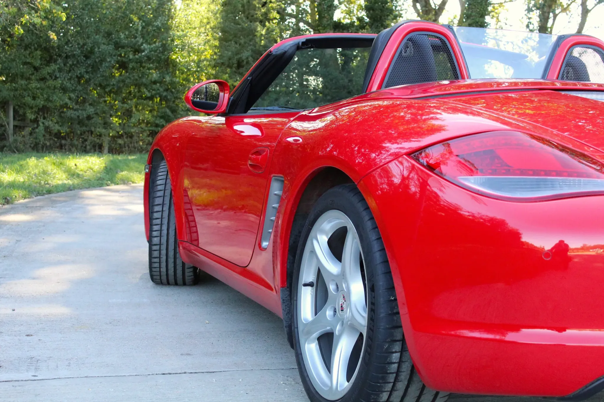 Beautiful, low mileage 987.2 Boxster, finished in the iconic Guards Red, with the 6-speed manual gearbox. Unmarked 19″ 5-spoke Carrera Classic alloy wheels with four new Michelin PS4S tyres, clean sports twin tail pipe tips, body-coloured roll bars, clear headlight faces. Soft top roof in good condition and bodywork in fabulous condition, benefitting from our customary FGP Detailing Package.