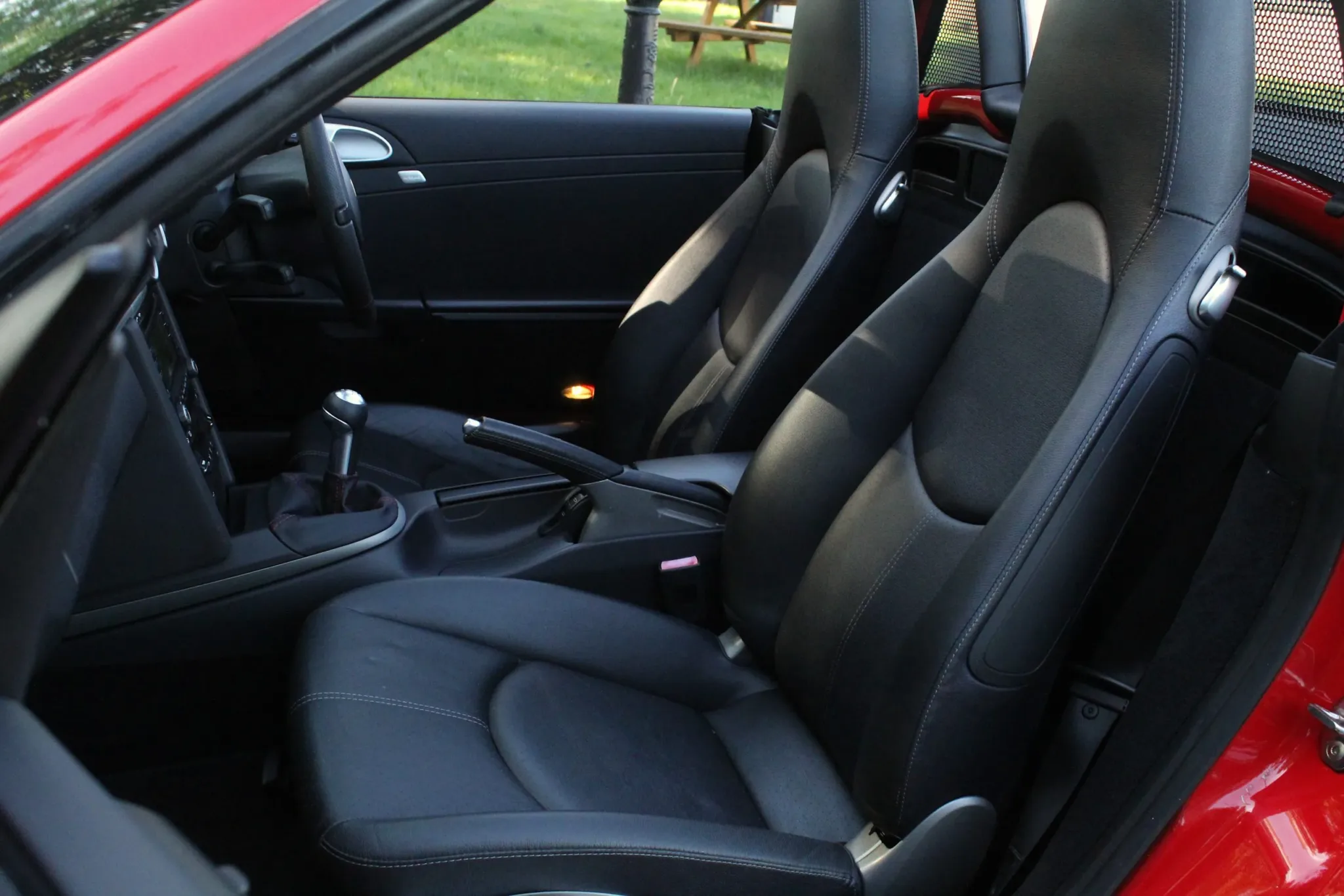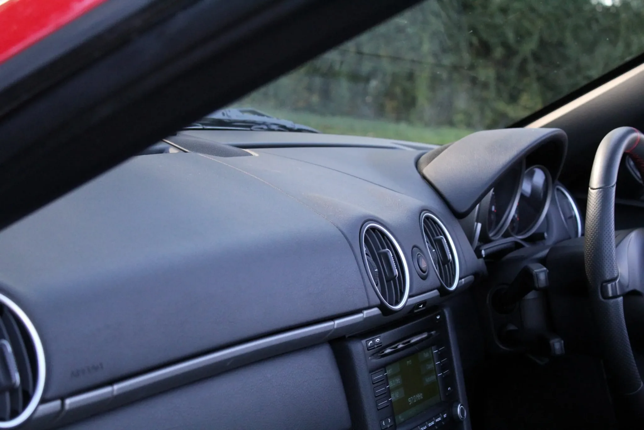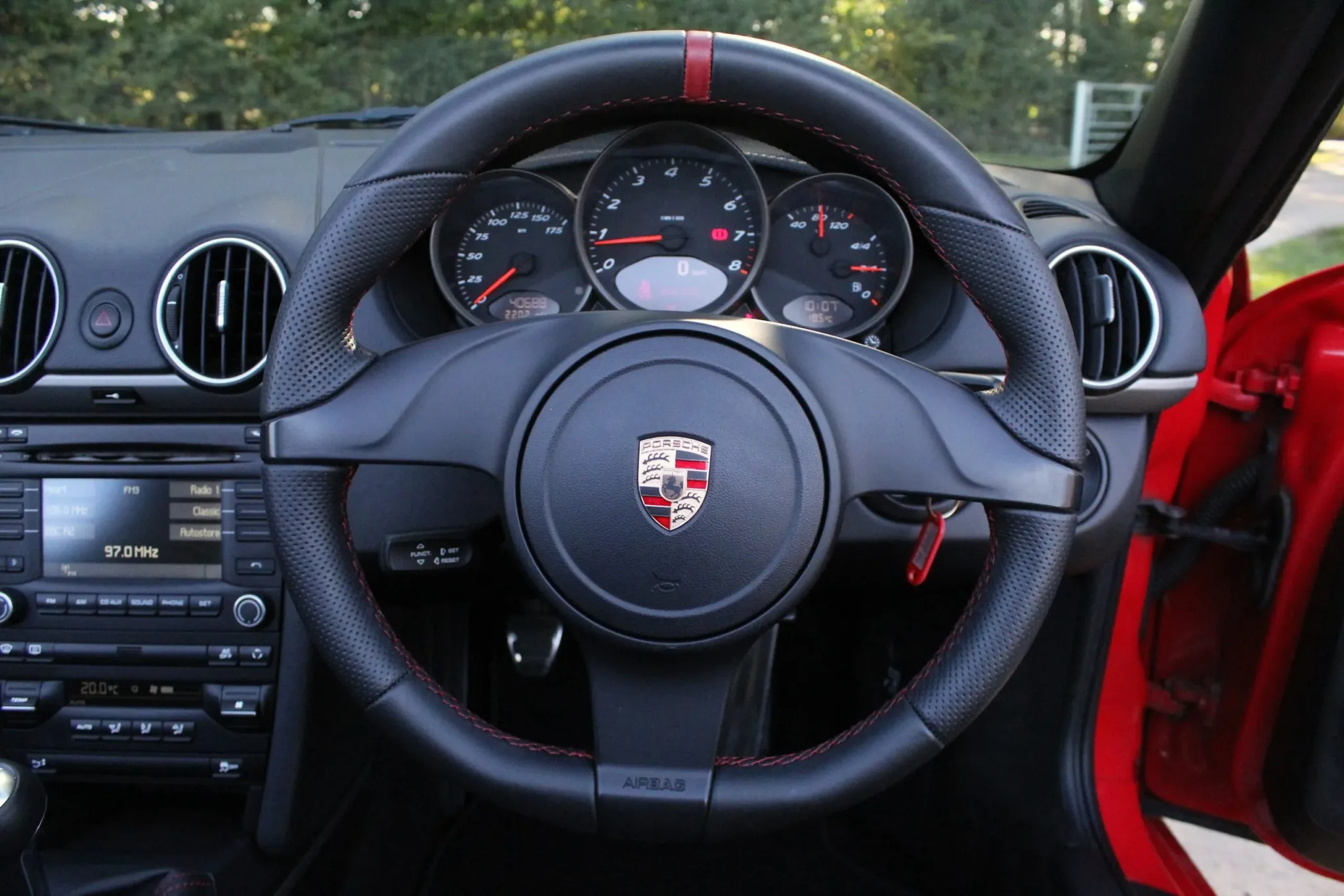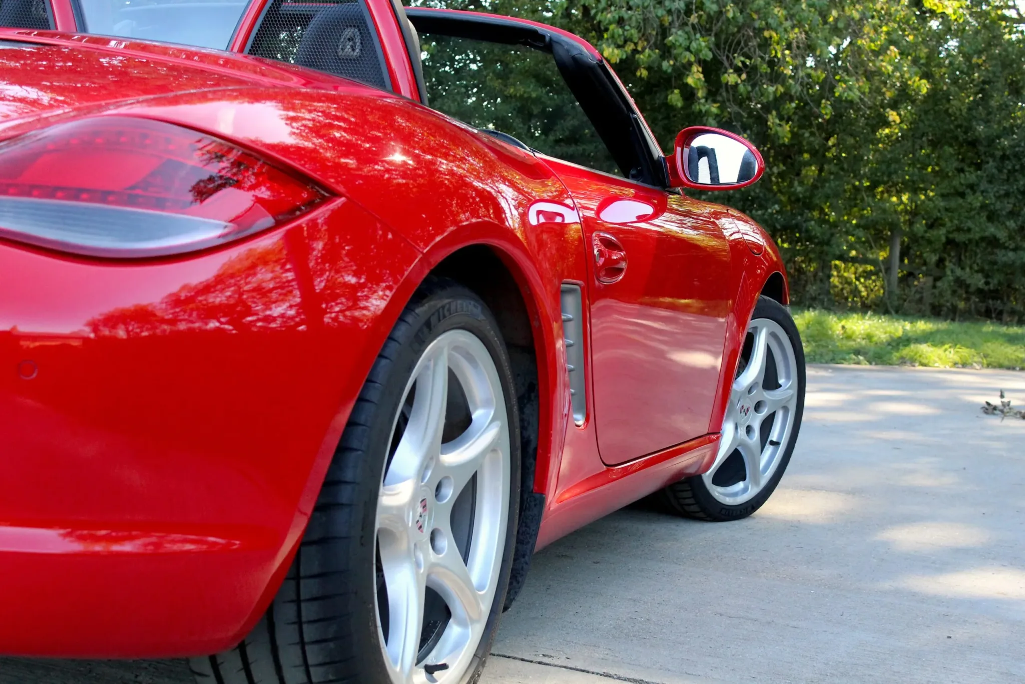 Beautiful, low mileage 987.2 Boxster, finished in the iconic Guards Red, with the 6-speed manual gearbox. Unmarked 19″ 5-spoke Carrera Classic alloy wheels with four new Michelin PS4S tyres, clean sports twin tail pipe tips, body-coloured roll bars, clear headlight faces. Soft top roof in good condition and bodywork in fabulous condition, benefitting from our customary FGP Detailing Package.